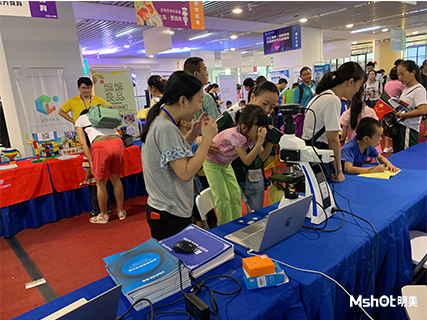 廣州明美十分贊同該理念,只有親身體驗(yàn)之后,才能領(lǐng)略到新科技對(duì)人們生活、特別是對(duì)教育帶來的巨大變化。在展位上,我們展示了不少學(xué)校實(shí)驗(yàn)室用到的產(chǎn)品,深受小朋友喜愛,紛紛詢問顯微鏡下的世界為什么如此神奇。小朋友們通過廣州明美工程師現(xiàn)場(chǎng)的解說,了解到了顯微操作基本原理,對(duì)顯微微觀世界表現(xiàn)出濃厚的學(xué)習(xí)興趣。