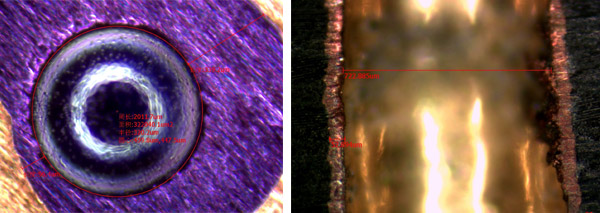 廈門某電路板制造公司需要對電路板進行顯微觀察以及銅厚測量,在當?shù)匚锷嗉夜径疾荒芙鉀Q其顯微測試需求,最后通過業(yè)內(nèi)朋友介紹,聯(lián)系到明美公司。明美的工程師通過細致評估客戶的需要,并對客戶的樣品進行實測分析,最后推薦了明美的明暗場金相顯微鏡MJ33及成像設(shè)備MD50,通過明暗場切換觀察電路板,可以有效避免金屬樣品的反光,讓顯微觀察樣品輪廓更清晰,配套的成像設(shè)備MD50可以拍攝樣品圖片并進行二維測量。